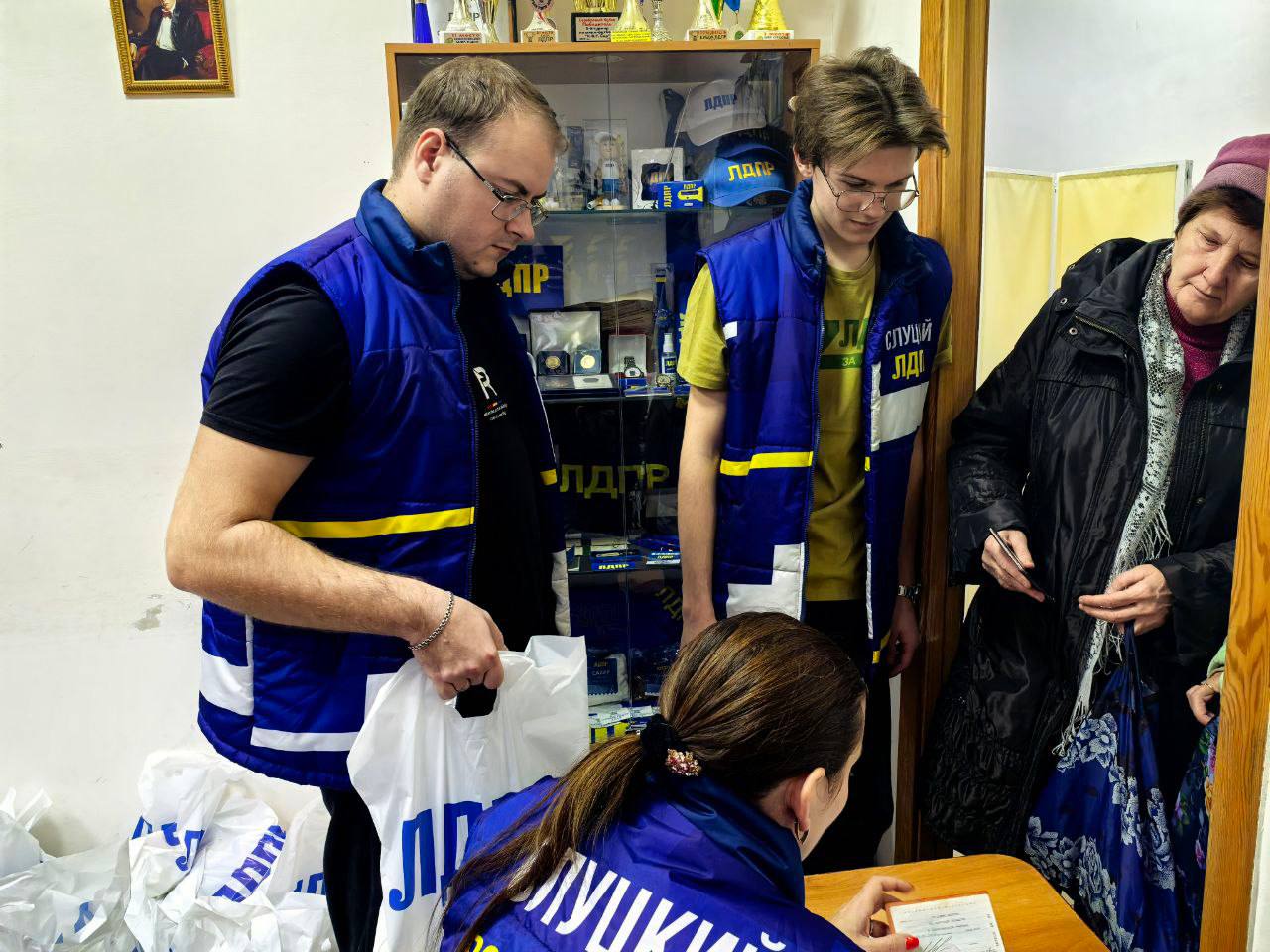 В штабе ЛДПР прошла выдача гуманитарной помощи